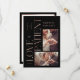 Atualize sua família e amigos com sua nova data de casamento com nosso moderno e mínimo negro salve o novo cartão com fotos de data. O design apresenta um moderno layout de duas fotos para exibir suas próprias fotos especiais. "O amor é o paciente" é exibido em um moderno falso rosa de, design de tipografia de folhas de ouro com nomes e uma nova data de casamento. O verso apresenta um simples design de borda dourada rosa e uma mensagem personalizada no verso.