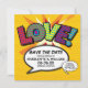 Personalize com seus nomes e detalhes para anunciar a data do seu evento especial. Tema de arte pop de história em quadrinhos moderno, design retrô divertido, perfeito para casamentos, chá de noiva, chá de bebê, batizados, festas de noivado, celebrações de aniversário, formaturas, festa de aniversário e outros eventos especiais ao longo do ano! Um design legal, moderno e divertido que dá um up no seu dia. Criado por ComicBookPop© em www.zazzle.com/comicbookpop*