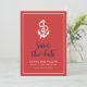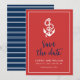 Salve o dia Estiloso Náutico com uma âncora e as palavras "salve o dia" em um script azul elegante contra um fundo vermelho com uma borda branca. O cartão tem um padrão de listras brancas contra um fundo azul no verso. Confira outros itens de casamento aqui https://www.zazzle.com/rosewoodandcitrus/gifts?cg=196540141241316965&rf=238364477188679314