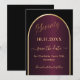 A Save the Date card for a 70 festa de aniversário. Um fundo preto e arrojado, decorado com um arco de ouro falso. Personalize e adicione uma data e seu nome. O texto: Setenta e Salvar a Data é gravado com um script de estilo com letra de tendência grande.
