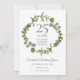 Apresentando uma elegante granja verde da floresta, este aniversário de casamento botânico, exceto o cartão de data, pode ser personalizado com suas informações especiais de aniversário de prata. O reverso apresenta uma garland floral correspondente que enquadra suas datas de aniversário em um texto branco elegante em um fundo prateado. Projetado por Thisnotme©