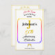 Aniversário e guardar a combinação de data Convite com qualquer nome e data, etc., num fundo branco com bordas e acentos dourados. Use as modelos à direita para mudar de frente e de trás para se adequar ao seu evento.