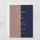 Este design apresenta blocos clássicos de cor - mocha e marinho com pontos cor-de-rosa pincelados no verso da placa. as palavras "Salvar a Data" são digitadas em rosa-pincelado. Use os campos modelo para adicionar detalhes personalizados. Pode ser usado para um doce aniversário de 16, 40, 50, 60 anos... ou qualquer idade