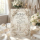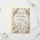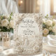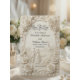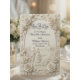 Announce your formal union with the timeless elegance of a sculpted bas-relief effect. A monochromatic ivory masterpiece featuring a romantic church scene.This design mimics the intricate artistry of a classical bas-relief sculpture, rendered in soft shades of ivory, cream, and off-white. The layout features a central oval vignette depicting a formally dressed couple walking along a cobblestone path toward a traditional country church with a steeple. This scenic focal point is surrounded by a highly detailed, faux-embossed border of blooming rosebuds and lush foliage, utilizing simulated light and shadow to create a convincing 3D architectural appearance. The typography is presented in a formal serif script, integrating seamlessly with the stone-carved aesthetic.This is a flat printed image with a faux relief texture effect, not actual raised material or indented paper.