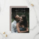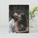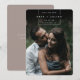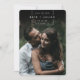 Um simples e elegante salvamento do design de data para casais modernos, com uma foto vertical que desaparece para preto no topo. Um elemento geométrico branco tem os seus nomes, a data do casamento e a localização em sans serif e itálico. Adicione detalhes adicionais à parte traseira. Devido ao posicionamento dos elementos de design, esse estilo é recomendado para fotos verticais com espaço amplo no topo.