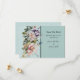 Bonito e delicado púrpura e flores aqua em um delicado fundo aqua colorido com sua informação de casamento na frente. O convite e o RSVP estão disponíveis que correspondem a este convite. Este convite também está disponível em uma opção de papel de folheto. Usei a escolha do Felt White para este conjunto.