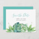 Anuncie o seu noivado com estilo com este lindo cartão de "save the date" sem foto - uma escolha ideal para um casamento na praia na Flórida ou em qualquer casamento em destino. Com minhas folhas tropicais originais pintadas à mão em aquarela (palmeira e monstera), este design combina beleza natural com charme moderno.