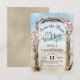 Este belo cartão de save the date é perfeito para um casamento de destino. Ele apresenta um design tipográfico com caligrafia em letra cursiva rendada dentro de um arbusto de praia de madeira flutuante em aquarela adornado com flores rosa e brancas. Há espaço para seus nomes, data e local do casamento.
