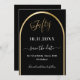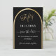 A Save the Date card for a 50th festa de aniversário. Um fundo preto, decorado com um arco de ouro falso. Personalize e adicione uma data e seu nome. O texto: Cinquenta e Salvar a Data é escrito com um script de estilo com letra de tendência grande.