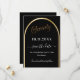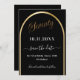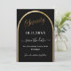 A Save the Date card for a 70 festa de aniversário. Um fundo preto, decorado com um arco de ouro falso. Personalize e adicione uma data e seu nome. O texto: Setenta e Salvar a Data é gravado com um script de estilo com letra de tendência grande.