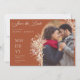 Elegante Salve a data com fotos arquivadas personalizadas, em um dueto de terracota e creme, para complementar seu tema de cor de casamento. Design de aquarela com arco de tendência, decorada com folhas e folhagem em tons de cinamão de ferrugem, amarelo de amêndoa e ouro. Design elegante, folheado, com caligrafia e estilo moderno numa paleta rica, quente e rústica de cor terrestre. Por favor, navegue na minha loja - coleção de direitos de folhagem - para itens correspondentes.