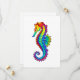 Articulação artificial, brilhante, arco-íris, cavalo de mar poligonal sobre fundo branco. Tatuagem brilhante.