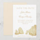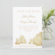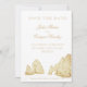 Este convite de casamento com data de reserva apresenta um desenho do famoso arco no Lands End em Cabo San Lucas, México, na ponta da península da Baja. Todos os detalhes importantes do casamento podem ser personalizados. As cores incluem um gráfico em tom sépia dourado com texto coordenado.