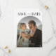 Surpreenda seus entes queridos com este elegante convite de Save the Date, apresentando foto arqueada escura, texto em coração e texto editável. Adicione facilmente seus próprios detalhes clicando na opção "personalizar".