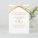 Anuncie a data da festa de aniversário de 50 anos de casamento com este cartão exclusivo de save the date moderno. Personalize este convite de aniversário único e elegante com os nomes do casal, local do evento, data da festa e mais texto editável conforme necessário. Eu criei este design original de arco moderno em tons dourados em um fundo branco para você. Não é folha de ouro. A tipografia simples contemporânea em tom dourado pode ser editada. Os dois corações entrelaçados desenhados à mão dão um toque romântico e sofisticado. O texto simples e elegante que diz "Aniversário de 50 anos" pode ser editado para qualquer número para um aniversário de 25 anos ou outro ano de aniversário, se necessário.