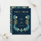 Este lindo Save the Date certamente causará uma ótima impressão! O design apresenta um motivo floral inspirado em William Morris vintage moderno em azul e amarelo, as palavras "Save The Date" em fontes elegantes com um espaço para foto em arco no verso.
