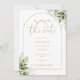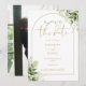 Este convite de salvar a data com folhas de verde botânico elegante e arco dourado pode ser personalizado com suas informações em tipografia dourada chique com sua foto especial no verso. Criado por Thisisnotme©