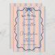 Capriche e colorido casamento salve o encontro apresentando uma doce harmonia de rosa, listras azuis empoeiradas, uma moldura ondulada de rabiscos e um laço azul. Essa combinação simples, porém romântica, de seu cenário retrô e caligrafia elegante faz com que esse convite seja verdadeiramente único e divertido.