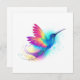 Bela, iridescente, exótica beija-flor voadora sobre fundo branco, pintada com pintura multicolorido, aquarela. Cotovelo-cotovelo.
