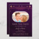 Mística Arco-Íris Profundo Plum Sun Moon Star Espaço Salva As Datas apresentam um arco-íris colorido sol, lua e estrelas em um fundo profundo de ameixa. Dentro é a sua foto favorita e o seu personalizado salva as informações de data. Personalize editando o texto nas caixas de texto. Projetado para você por ©Evco Studio www.zazzle.com/store/evcostudio