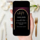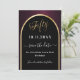 A Save the Date card for a 50th festa de aniversário. Um fundo preto e arrojado, decorado com um arco de ouro falso. Personalize e adicione uma data e seu nome. O texto: Cinquenta e Salvar a Data é escrito com um script de estilo com letra de tendência grande.