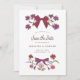 Elegante e coquete, guarde o cartão com ilustração desenhada manualmente dos arcos e flores em cor magenta. Você pode adicionar uma foto atrás.