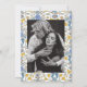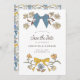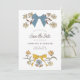 Elegante e coquete, guarde o cartão de data com ilustração desenhada manualmente dos arcos e flores em cores azul e amarela. Você pode adicionar uma foto atrás.