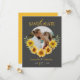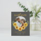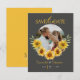 Este elegante cartão Save the Date com tema de girassóis apresenta um fundo cinza moderno com uma foto elegante em um pequeno arco na frente, criando uma aparência contemporânea e sofisticada. A parte de trás exibe um tom amarelo girassol quente, complementando perfeitamente o design do convite de casamento. Com sua tipografia elegante e sutil e acentos florais rústicos, este cartão é ideal para casais que planejam um casamento com tema de girassóis ou rústico. Personalize-o com seus detalhes para torná-lo exclusivamente seu!