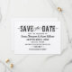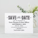 Casamento de chic russo salve o cartão de data com texto personalizado na moda em fontes de tipografia estilo ocidental e moderno que podem ser personalizadas para seu anúncio. Design de texto preto no estoque de papelão marrom kraft.