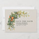 Arranjar elegante casamento, botânica rústica de laranja rústica moderna salve o cartão de data. Uma coleção moderna.