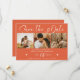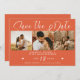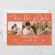 Casamento com script de caligrafia moderna, laranja brilhante e na moda minimalista de tendências, salve o cartão de data com 3 fotos de colagem. ++++++++++ Adequado para casamentos de Verão. +++++++++ Fácil de personalizar com suas imagens e detalhes em ambos os lados.