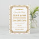 Estes save the dates apresentam uma paleta de cores branca e dourada, uma moldura geométrica, padrões geométricos e outros detalhes estilísticos inspirados no Art Déco e nos loucos anos vinte. Você pode personalizar os campos de texto de amostra ao seu gosto.