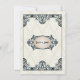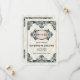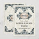 A 1920 parece sempre retornar à cultura popular e um casamento de temas 1920 é certamente um para ser lembrado. Este deco de arte influenciou a salvação da data do anúncio do casamento... faz com que a arte decorativa seja popular nos anos 20 para enquadrar seu costume salvar as informações da data. Um quadro de arte-deco ornamentado em preto superimprime um fundo creme com um sutil padrão decorativo de diamante para fazer do texto o foco. A mensagem save the date (salvar a data) se destaca em um quadro oval ornamental na frente, contendo os nomes dos casais no verso. Disponível com produtos correspondentes. com.