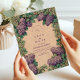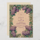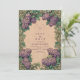 Romântico e eterno, este design de casamento Art Nouveau apresenta flores lilás exuberantes em tons roxos suaves, enquadrado com uma folhagem verde elegante num fundo de colheita. O estilo botânico ornamentado combina a arte clássica com beleza natural, fazer perfeito para casamentos de primavera, cerimônias de jardim ou casais que amam elegância floral com um toque de nostalgia. Totalmente personalizável com seus detalhes pessoais.