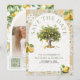 Surpreenda seus convidados com este elegante Save the Date com uma bela árvore de limão contra um fundo de azulejos mediterrâneos com Código QR no verso do cartão. Basta adicionar os detalhes do seu evento neste modelo fácil de usar e adornar este cartão com sua foto favorita para torná-lo um Save the Date único.