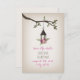 Um casamento, exceto a data com a ilustração de uma lanterna cheia de flores cor-de-rosa pendurada num galho de árvore com folhas verdes. Personalize o texto. Procure por convites de casamento e outros itens de coordenação na Paperie de Jill.
