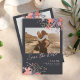 A caligrafia elegante com duas fotos simples de casamento, salve a data com a bonito ilustração floral de cor azul boho primavera de verão em roxo, coral, rosa, vermelho e azul.