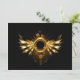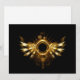Asas mecânicas brilhantes, com engrenagens e estandarte redondo de latão. Steampunk