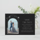 Astronomia da Estrela da Lua Negra-Chica Mística Astronomia da Estrela da Lua Espacial Cósmica Celestial Salve As Datas apresentam um sol cor-de-prata, lua e estrelas em um fundo preto elegante. Dentro é a sua foto favorita e o seu personalizado salva as informações de data. Personalize editando o texto nas caixas de texto. Projetado para você por ©Evco Studio www.zazzle.com/store/evcostudio