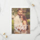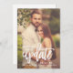 Anuncie sua "atualização da data do casamento" em estilo com esta simples e moderna revisão salve os cartões de anúncio da data que apresentam sua foto do noivado retrato com um design de sobreposição de script rugoso. Inclui texto na frente e no verso do cartão que pode ser personalizado com todos os detalhes importantes.