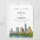 This DIY PRINTABLE save the date features a watercolor painting of the Austin Texas city skyline. Use this template to edit all wording, font, font color, and the background color to match your event style. Add your own photo or graphics easily to this template.