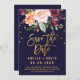 Este outono floral salve o cartão de data é perfeito para um casamento outono. O design apresenta um buquê espantoso de pincel, pêssego laranja, e flores marsala burgundy com falsa tipografia de folha de ouro e confete. Nota: Este design não apresenta folha de ouro real. É um gráfico de alta qualidade feito para se parecer com folhas de ouro.