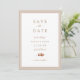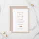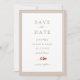 Simples Casamento de outono Minimalista Salve a Data. Este elegante casamento salva a data mostra um belo galho de cobre aquoso e folhas de ferrugem em fundo branco com borda bege.