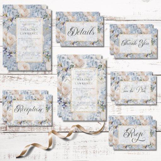 Blue & White Rustic Floral Gold Frame SuiteCriado por Kathe Santillo