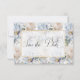 Este design de cartão de data save apresenta um lindo padrão floral azul e branco rústico de periwinkle azul e branco em um fundo empoeirado de fundo azul. O texto é exibido em uma área de texto transparente branca suave com um quadro de brilho dourado sujo. a parte de trás continua o padrão floral. Este cartão faz parte da suíte de casamento Blue & White Rustic Floral Dourado Frame, criada pela Simply Farmhouse Press.