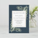 Apresentando delicadas folhas de aquarela sobre fundo azul-marinho profundo. Este chic Change the Date Card pode ser personalizado com seus detalhes de casamento atualizados. Projetado por Thisnotme©