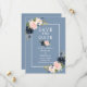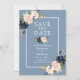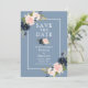 Anúncio de casamento do Noivado Floral Azul Dusty Elegante Cor d'água cor azul Dusty Cor-de-rosa Salva O Cartão-postal inclui rosas cor-de-rosa, rosas azuis poeirentos e verde num quadro branco.