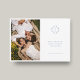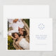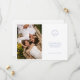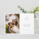 Chic com elegância jovem. Este casamento empoeirado, azul e branco, salvo o cartão de data, exumenta um tom fresco, moderno e jovem. A frente do cartão inclui um conjunto contemporâneo de fontes em azul empoeirado e elegante monograma de casal floral e foto de casal, contra um fundo branco nítido.