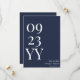 Faça uma declaração com o Marinho Data Grande Negrito Azul Salvar a Data. Apresentando um fundo azul-marinho elegante com letras e números brancos ousados, este design minimalista destaca a data do casamento com destaque pelos nomes do noivo e da noiva. Perfeito para casamentos modernos e elegantes, este cartão salvo-a-data combina simplicidade com sofisticação, garantindo que seus convidados marquem seus calendários com estilo.