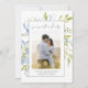 Casamento FOTO Salve a data retrata um design floral com azul empoeirado e verde-aquarela definindo a fotografia. As costas mostram os detalhes com uma introdução inspiradora, Bíblia Verse Song de Salomão 3:4, "Eu encontrei aquele que minha alma ama."